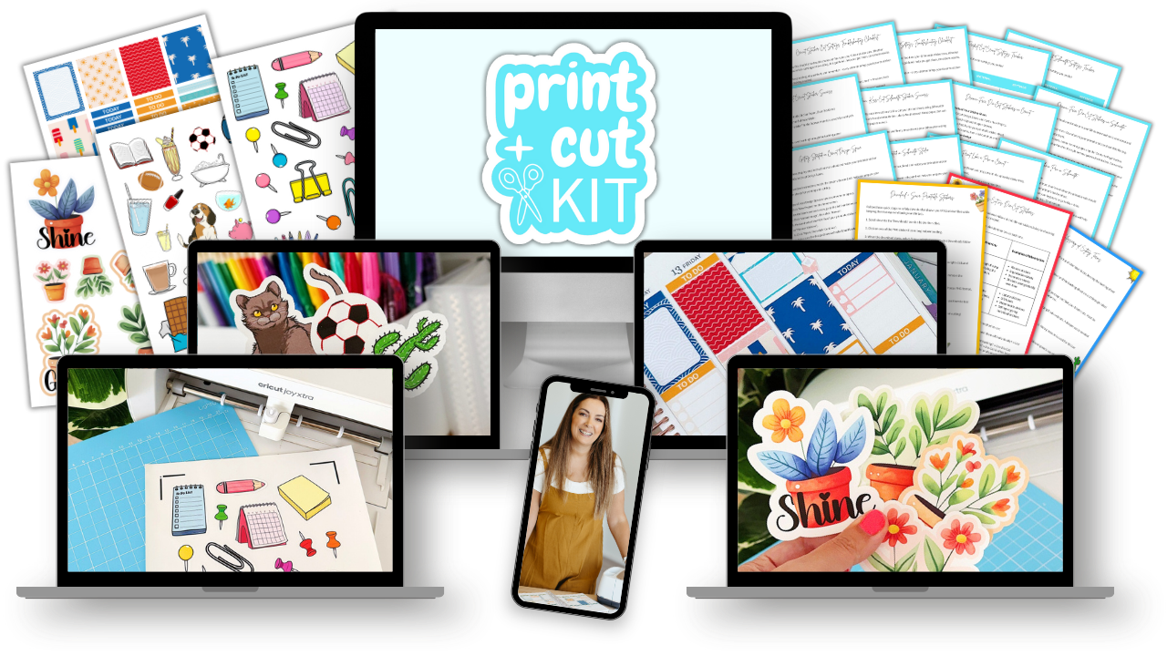 Inside the Print and Cut Kit, you'll follow my exact, beginner-friendly process to confidently print and cut perfect stickers every time. You don't need to figure this all out on your own–I'll show you exactly what to do, step-by-step.