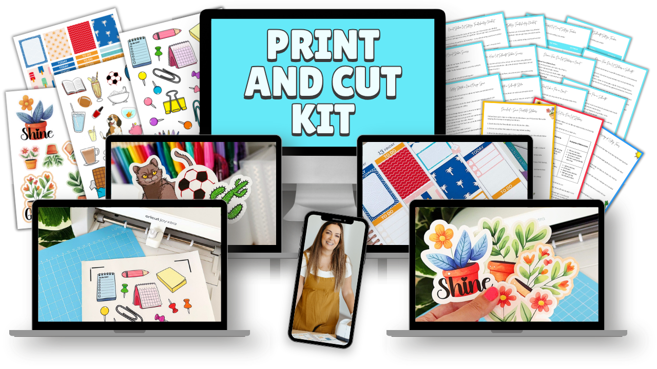 Get the beginner-friendly, fast-track mini course to confidently print and cut pre-made stickers in Cricut or Silhouette - without wasting sticker paper or getting stuck on the settings!