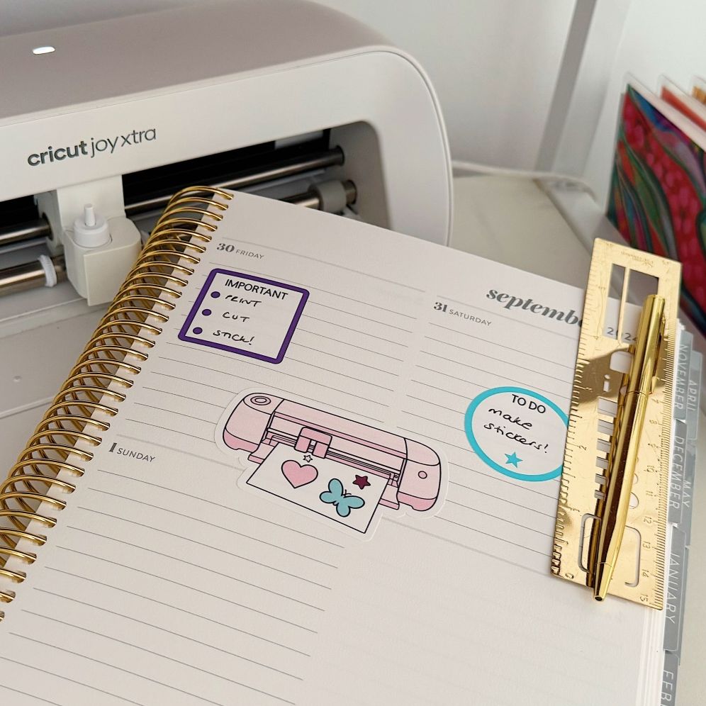 We’ll design an Everyday Essentials sticker sheet using simple shapes, fonts, and colours in Design Space. Then we’ll print and kiss‑cut it with your Cricut so you can finally say, “I DID IT!"