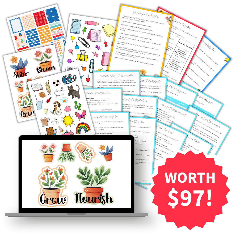 Inside, you get a complete beginnerâfriendly system to confidently print and cut stickers using your Cricut Xtra/Maker/Explore or Silhouette Portrait/Cameo.